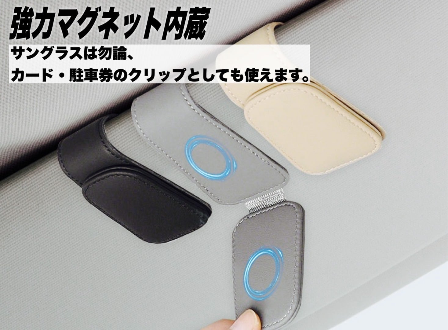 コンパクトながら高性能な車用サングラスホルダー。さまざまな眼鏡の厚さに対応し、しっかりホールドして傷や落下を防ぎます。