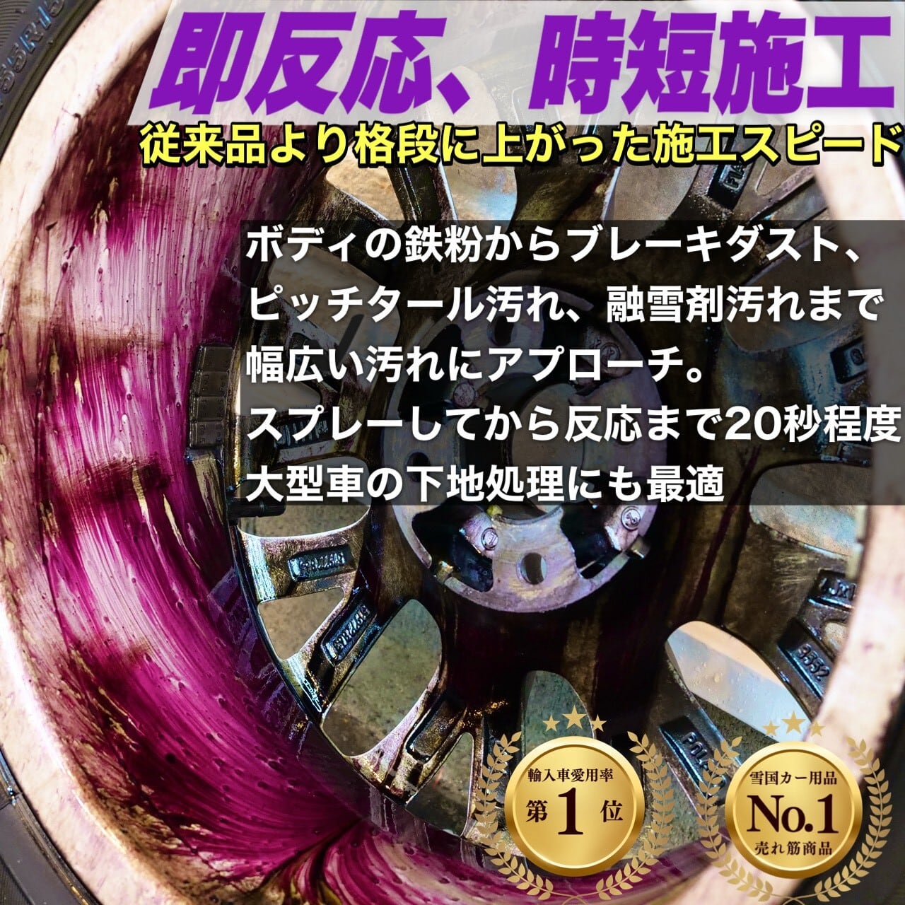 ◆もちろん頑固な鉄粉汚れにも効果的!スプレーして紫に反応まで平均20秒!