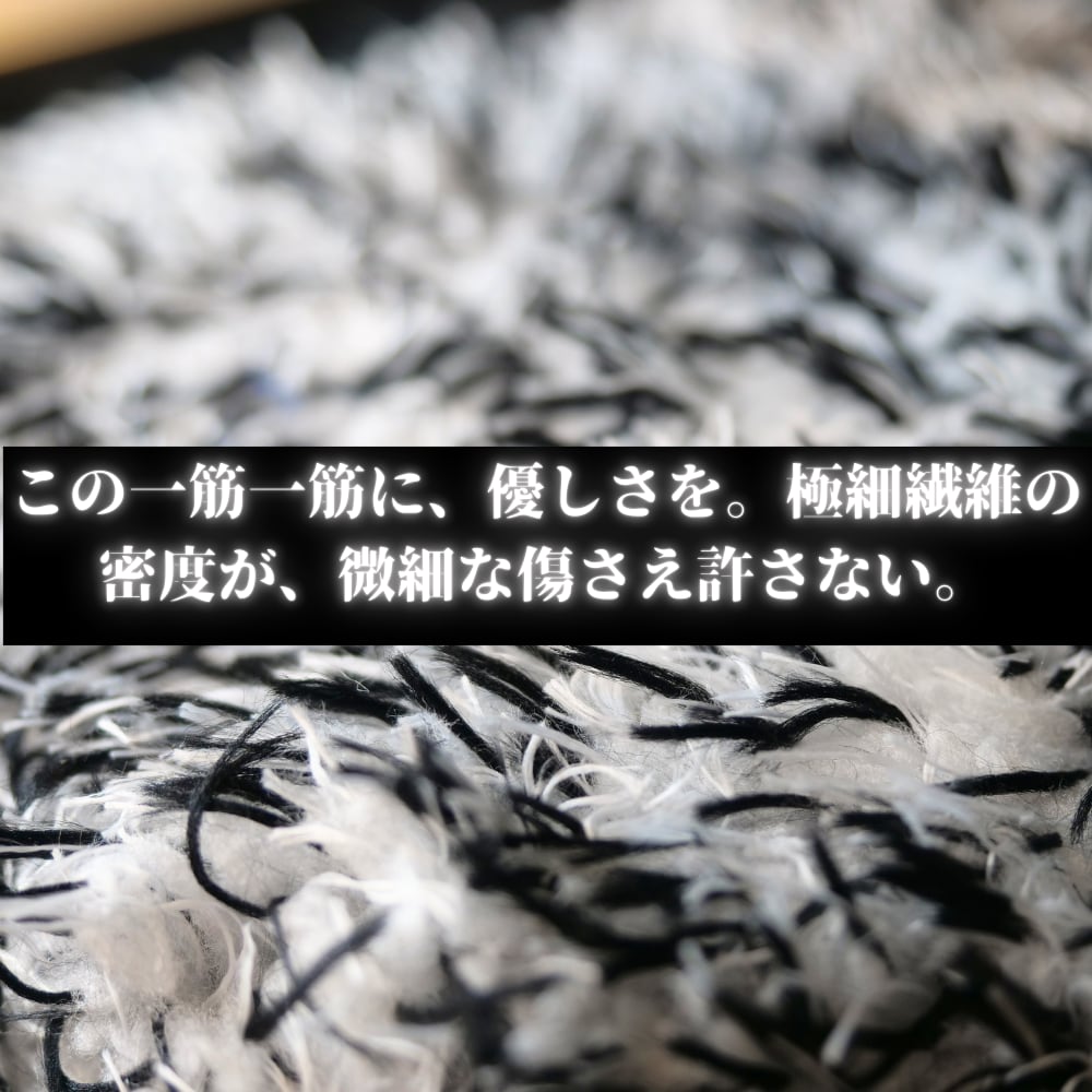 長い毛足が砂やホコリを優しく包み込み、引きずり傷を徹底防止。デリケートなコーティング施工車にこそ使ってほしい、プロ仕様のパッドです。
