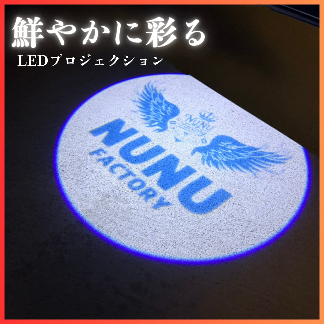 ただ足元を照らすだけではありません。NUNU FACTORYオリジナルデザインロゴが夜間に圧倒的な存在感を放ちます。