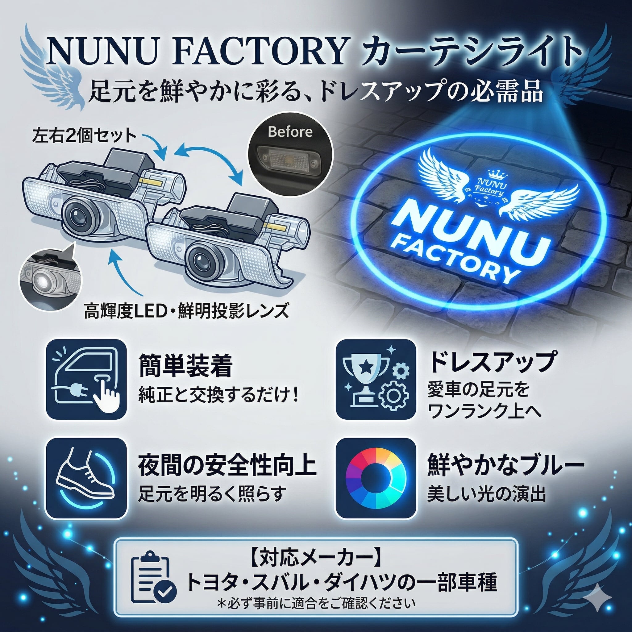 NUNU FACTORYカーテシライトで特別な夜のドライブを始めましょう。