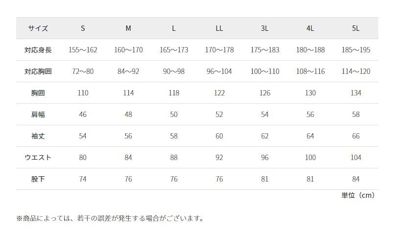 S~5Lまでの展開です。画像のサイズ表を参考ください